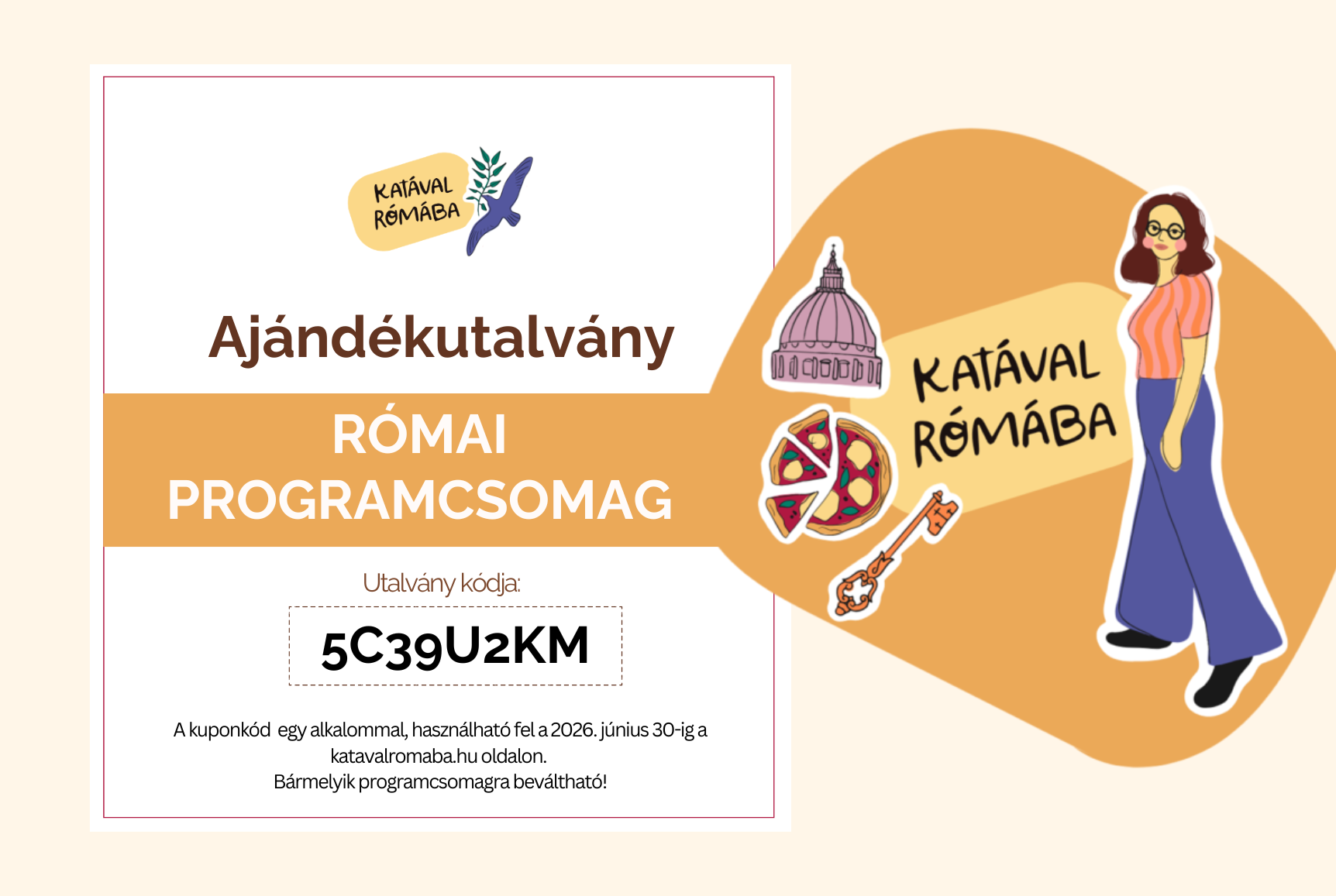 Ha szívesen adnád ajándékba valamelyik Katával Rómába programcsomagot, akkor jó helyen jársz, az ajándékutalvány pont ezt a célt szolgálja!