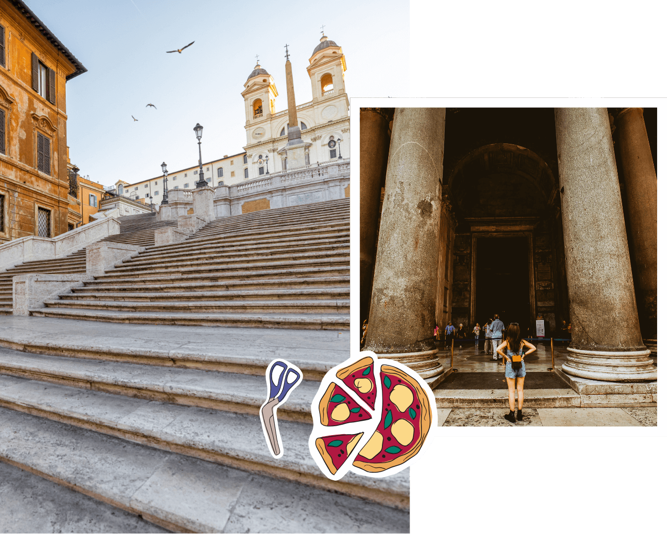 Az első fél napon a belvárosi ismerkedős sétát követően a Teatro Marcellóhoz mehetsz el, ami mellett van egy a sorozatban is szereplő híres római vendéglő. A korai vacsora után a zsidó negyedbe kalauzollak el a csomag segítségével, az este az Aventinus-dombon zárul. Másnap bérelhetsz egy vespát és azzal is körbejárhatod a Trastevere és a Gianicolo látnivalóit. A délután folyamán a Szent Péter-bazilikát és a közvetlen környezetében lévő helyeket fedezheted fel.
